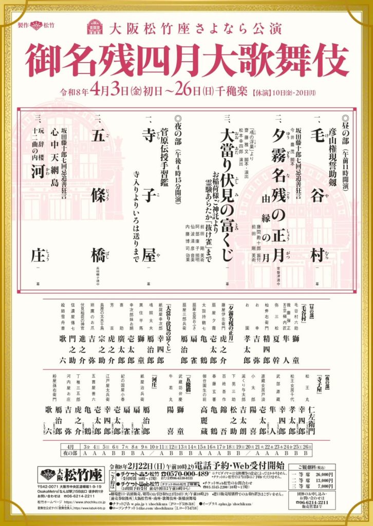 【2026年御名残四月大歌舞伎】御名残道頓堀お練り開催!演目・あらすじ・見どころ徹底ガイド