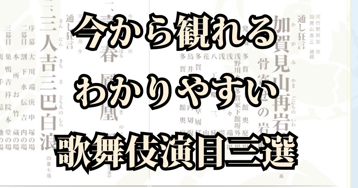 今から予約ができて、初めての方でも気楽に楽しめる歌舞伎の演目を、