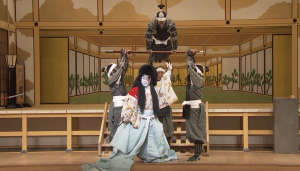 能が原作のものは、松羽目物(まつばめもの)と呼ばれ、能舞台を思わせる松の描かれた背景の中で演じられます。
